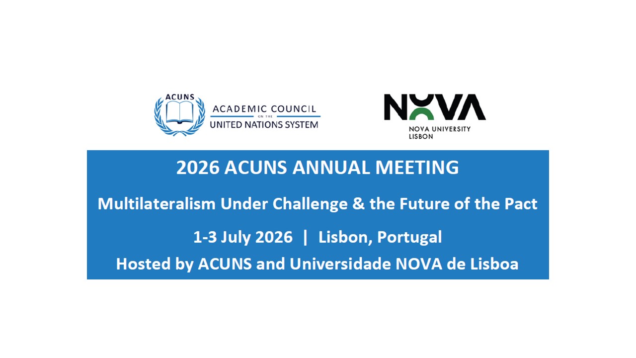 NOVA University Lisbon is honoured to host the 2026 Annual Meeting of the Academic Council on the United Nations System (ACUNS), dedicated to Multilateralism under Challenge and the Future of the Pact, from 1 to 3 July 2026.